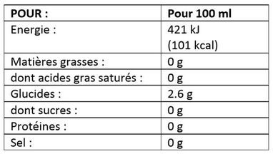 Stabilisants : acide métatartrique - gomme arabique.